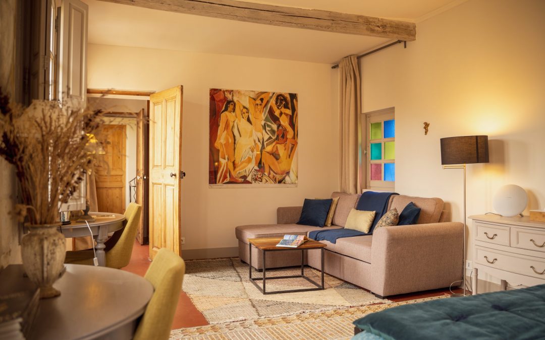 Une grande chambre avec vue sur le jardin