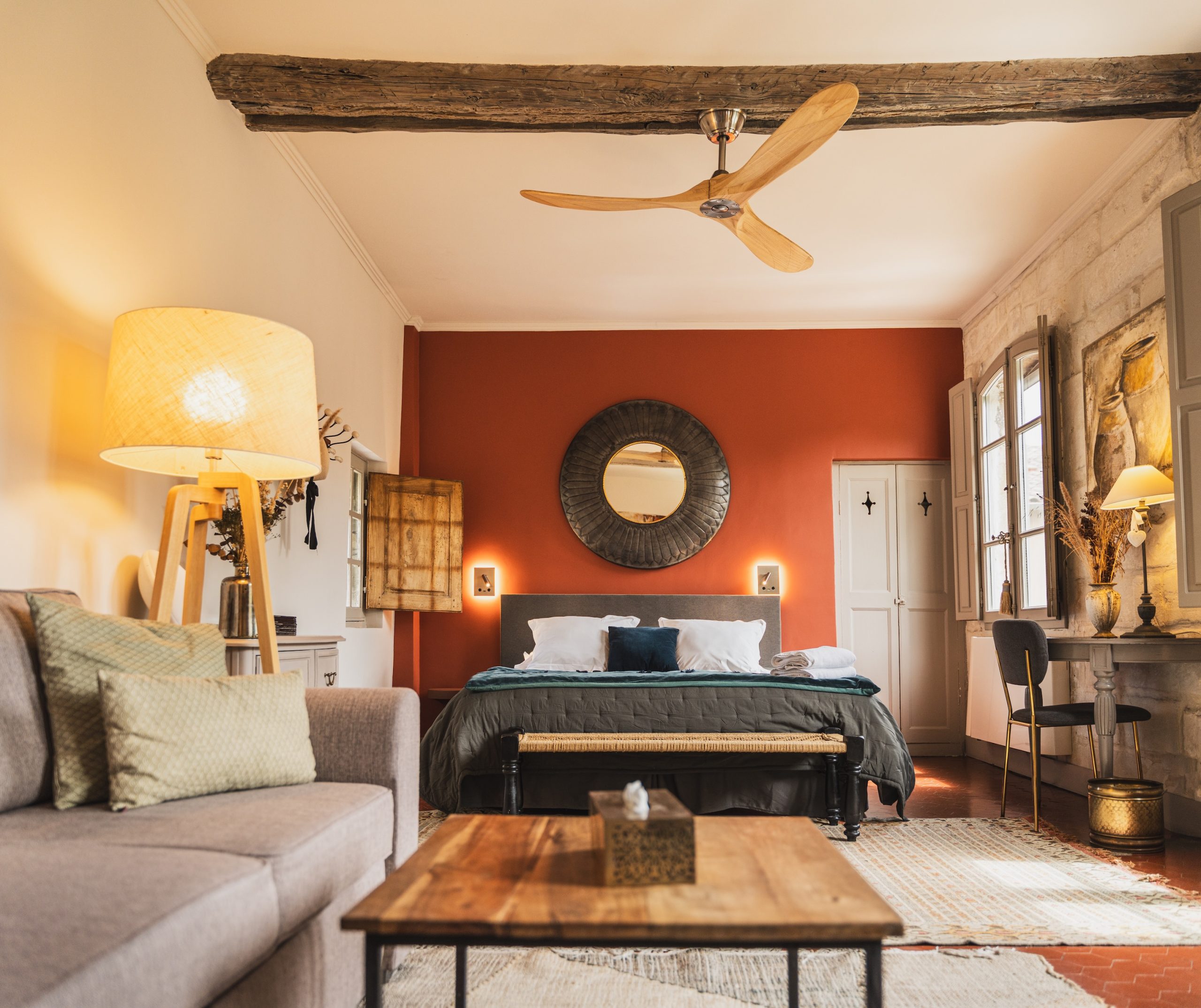 Une couleur ocre Bamboozle Farrow and ball sur le mur de la suite les Jardins d'Alhambra